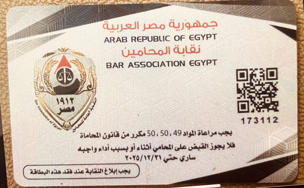 • Egypt: Advocate at the Egyptian Court of Appeal (Bar ID: 474036).